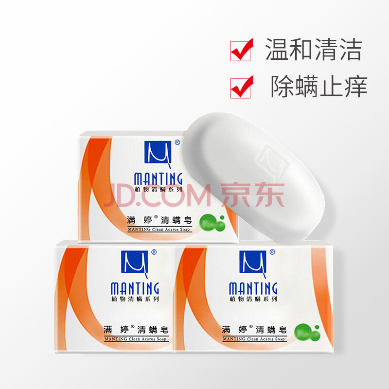 商品相册:满婷(MANTING)清螨皂除菌止痒100g*3(螨婷除螨香皂温和肥皂去螨虫洁面沐浴露)第