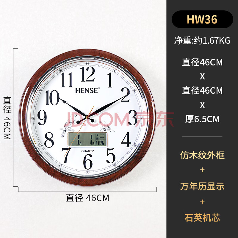 商品相册:汉时(Hense)挂钟客厅挂墙时钟创意现代简约挂表家用石英钟表HW36万年历46cm第