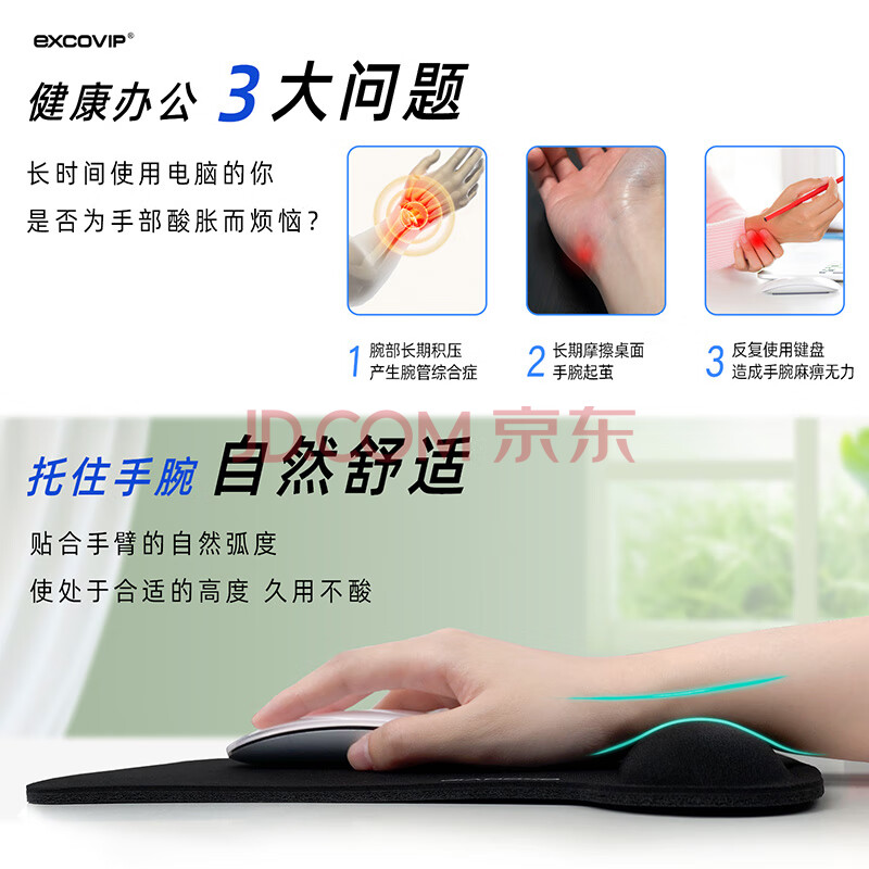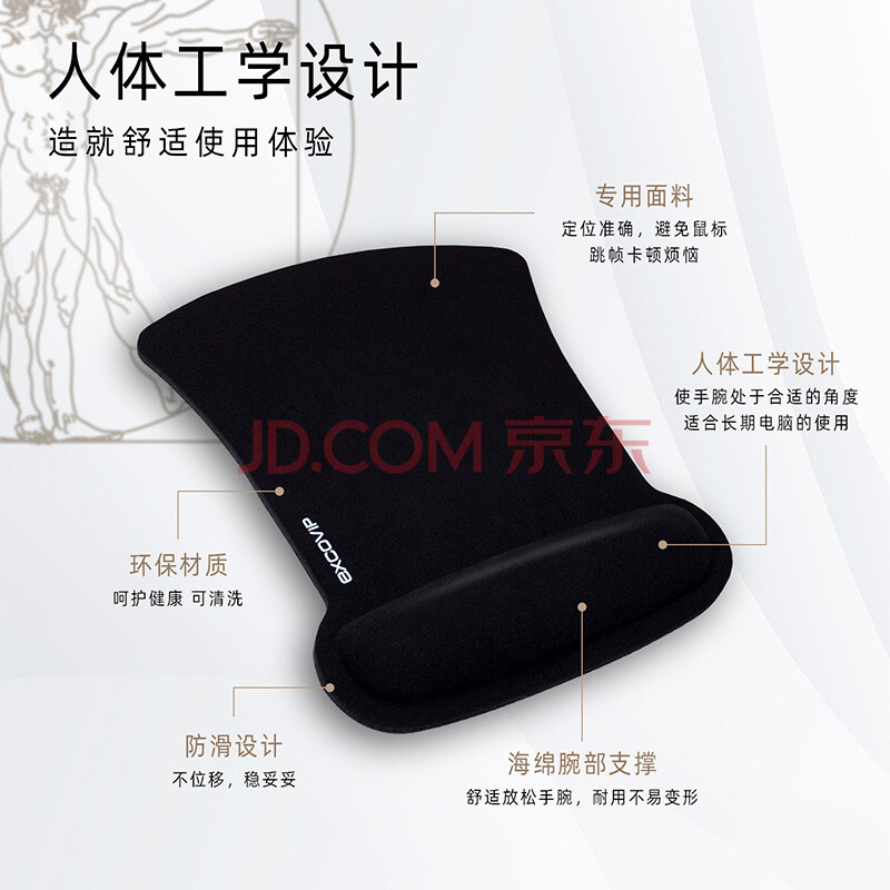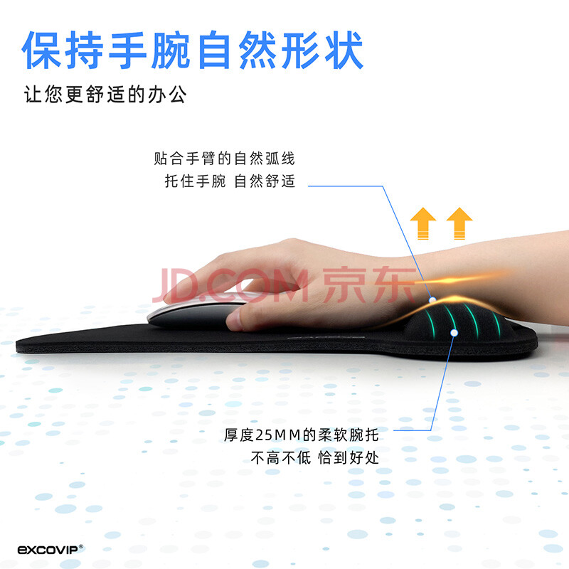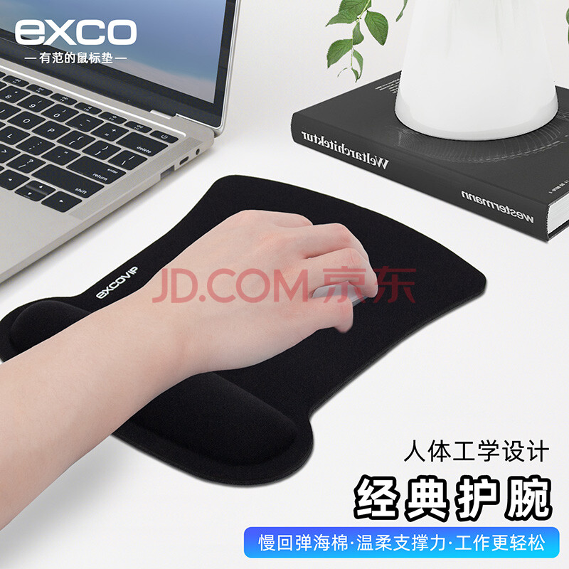 商品相册:宜适酷(EXCO)黑色记忆棉鼠标垫护腕大号手腕垫腕托笔记本电脑办公加厚游戏垫手枕手托0180第