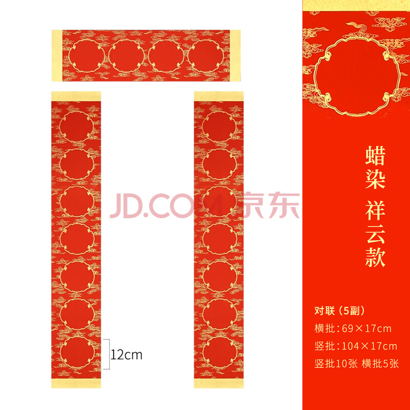 商品相册:漢墨 春联对联纸加厚款5副 批发手写烫金春节空白七言祥云款 新年装饰礼品对联乔迁用企业专享第