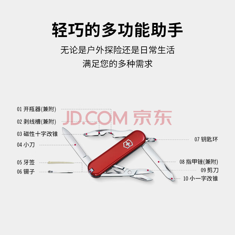 商品相册:维氏瑞士军刀逍遥派10项多功能刀水果刀折叠刀红色0.6363-012.6第