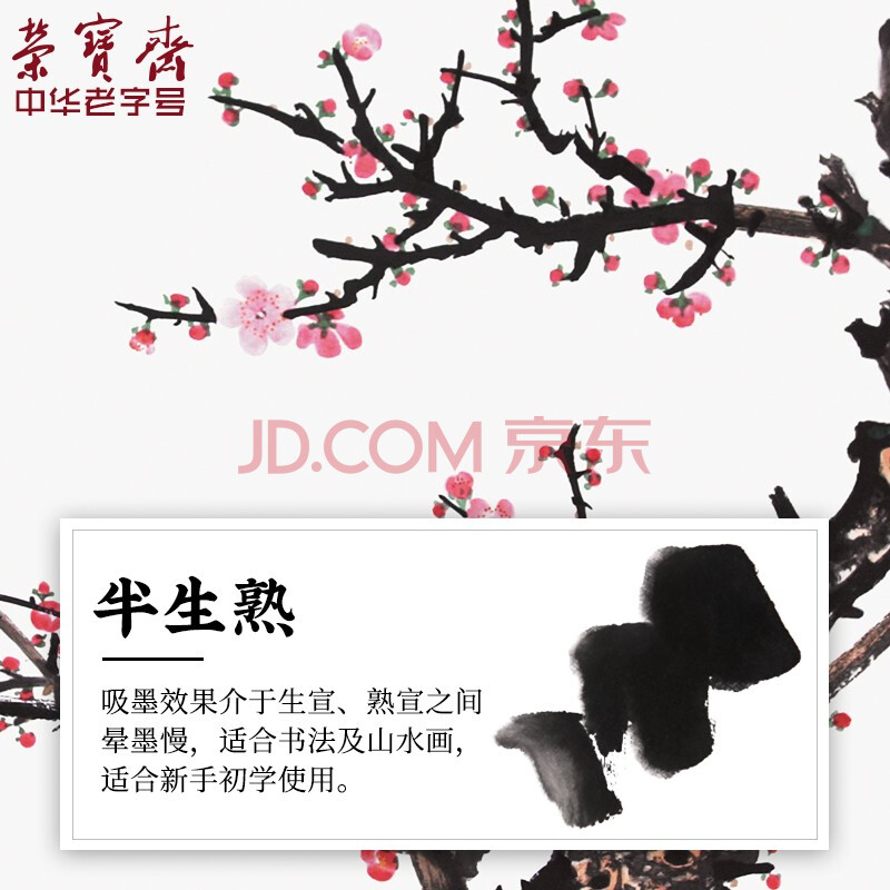 商品相册:荣宝斋 书画纸宣纸 日星宣纸半生熟书法国画专用纸毛笔初学练习创作学生入门 四尺对开/100张-加厚款第