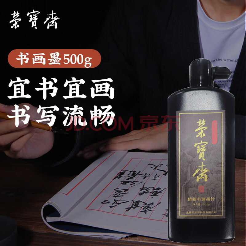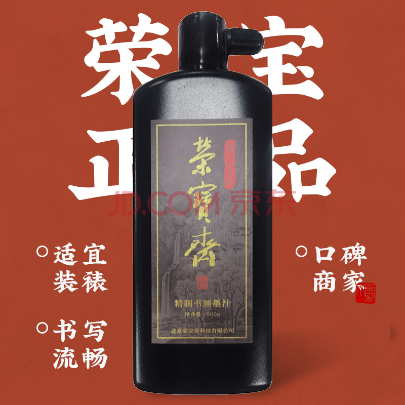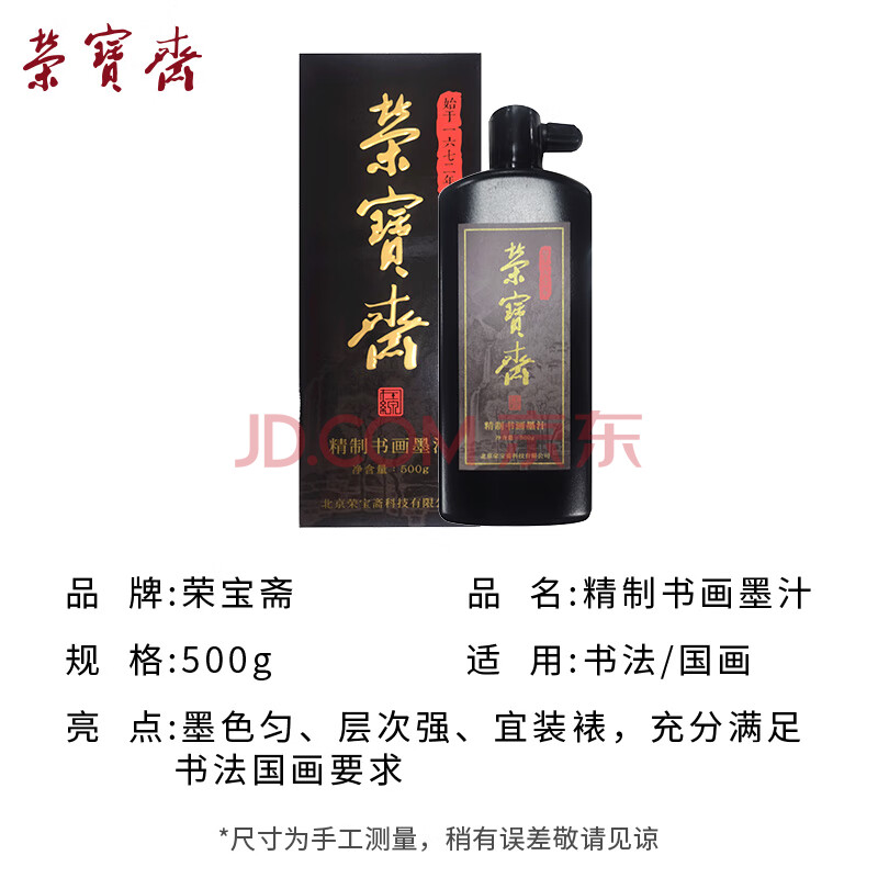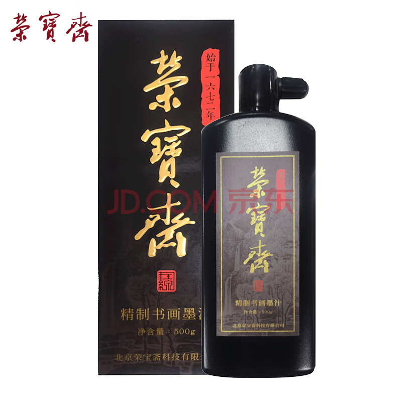 商品相册:荣宝斋 精制书画墨汁 书法国画专用作品墨液 初学者学生文房四宝高档创作 精制500g第1张/共4