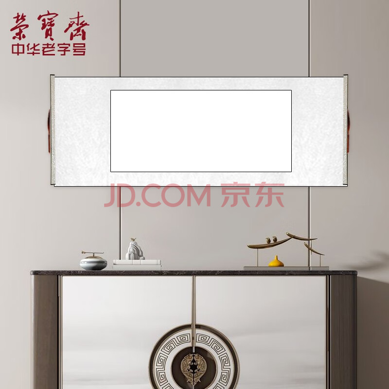 商品相册:荣宝斋 空白卷轴书画宣纸 日星宣纸全绫精裱复古横幅挂画立轴 书法作品纸国画手工空白挂轴 四开横轴第