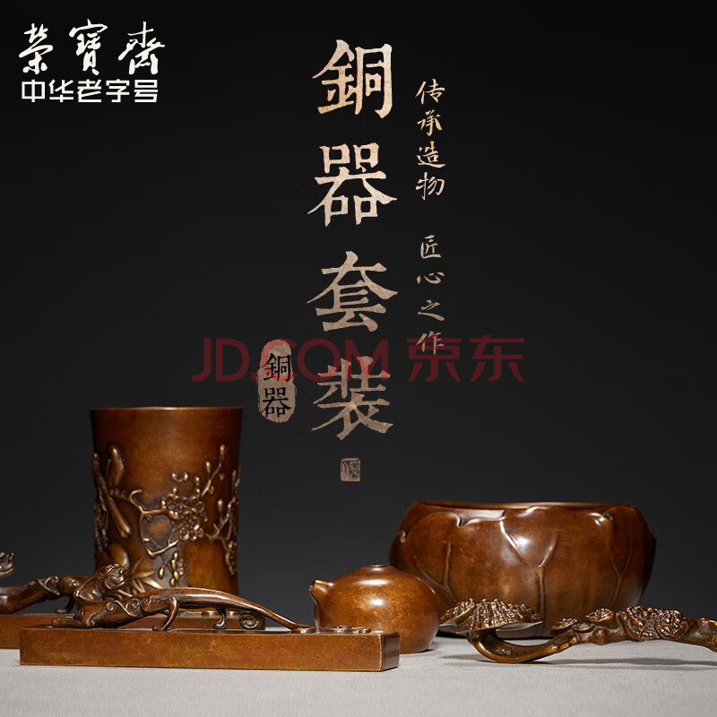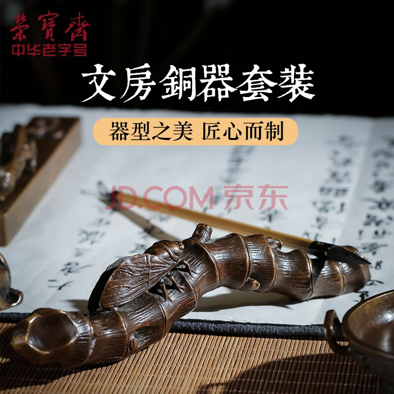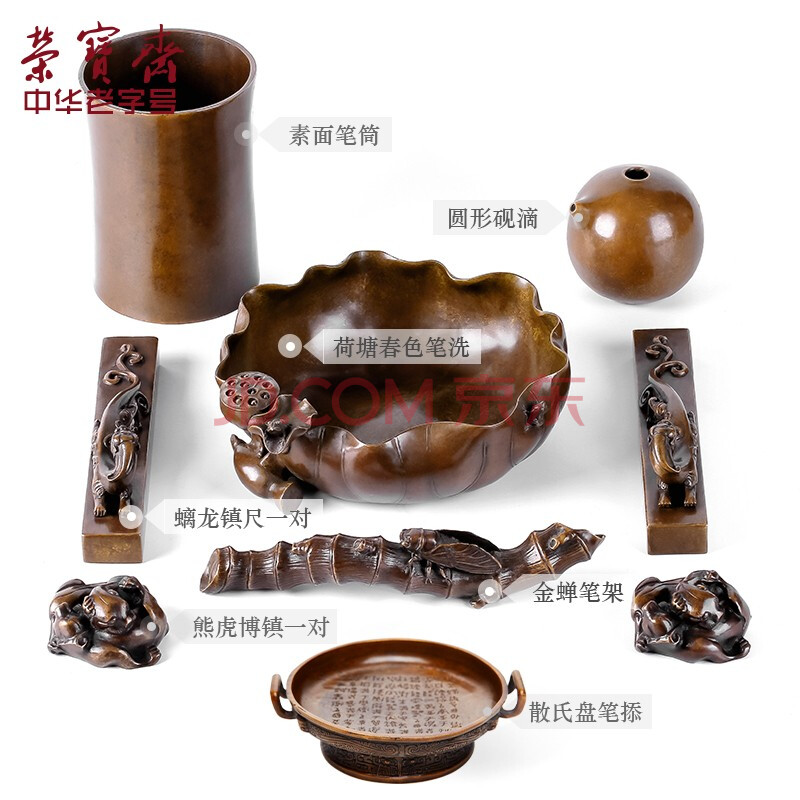 商品相册:荣宝斋 文房四宝套装 铜器九件套 仿古收藏笔架镇尺笔洗摆件书法国画 高档礼盒 大隐山河第