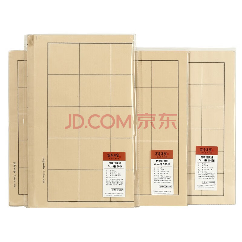 商品相册:漢墨百年墨宝竹浆日课纸 初学者学生书法练习半生熟纸6cm100张 文房四宝毛笔字纸毛边纸第