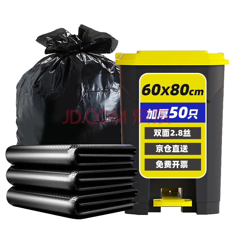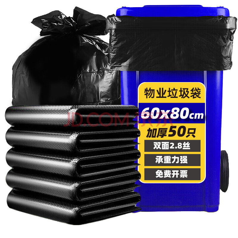 商品相册:逅拾平口垃圾袋黑色60cm*80cm*50只单面1.4丝免撕物业办公商用塑料袋第