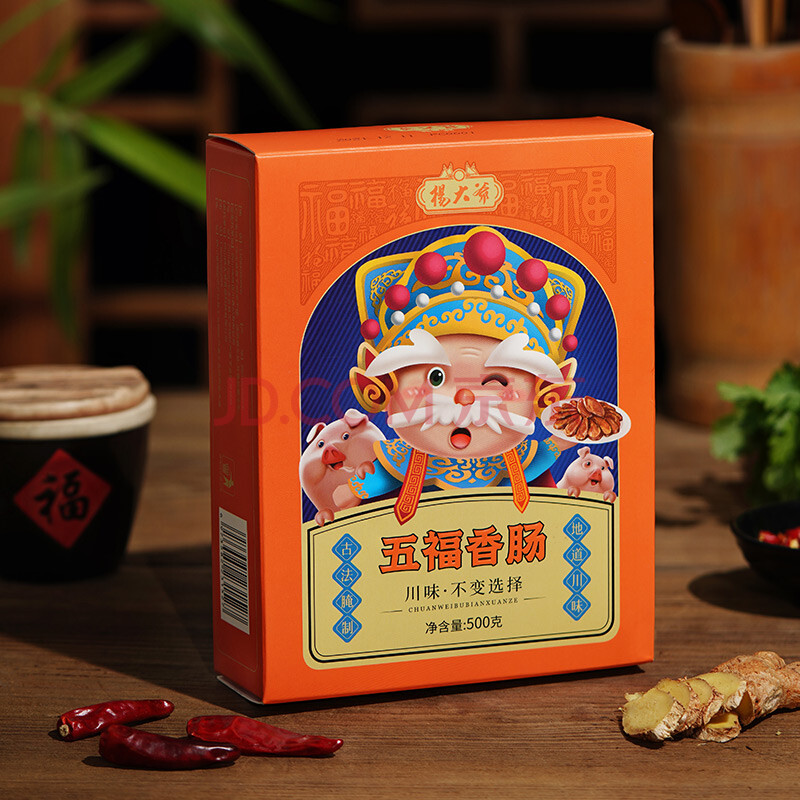 商品相册:杨大爷四川特产川味腊肠烟熏五福香肠500g1斤装第