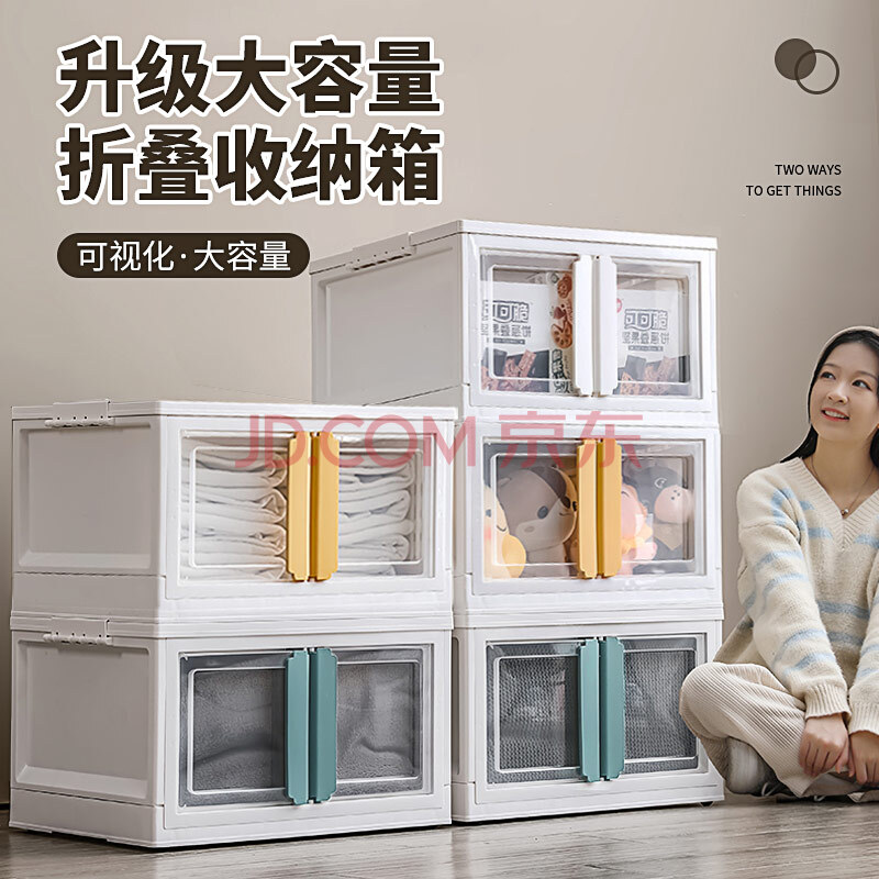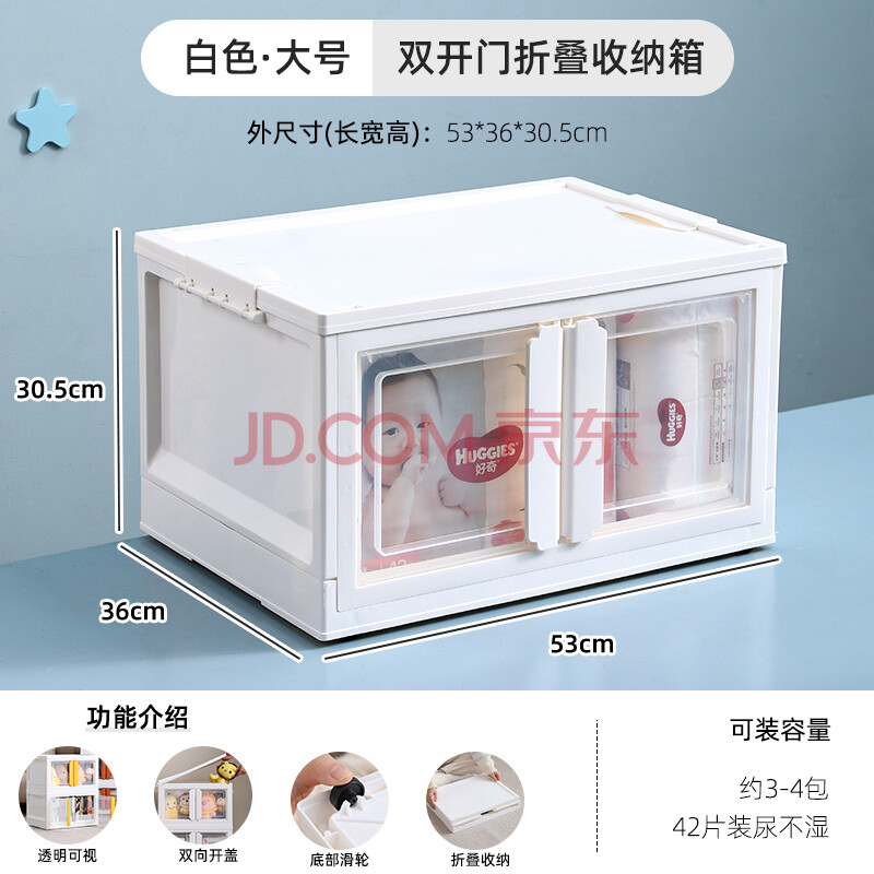 商品相册:JEKO&JEKO双开门收纳柜收纳箱折叠书籍书本整理箱儿童衣柜储物柜白色 1只装第1张/共5