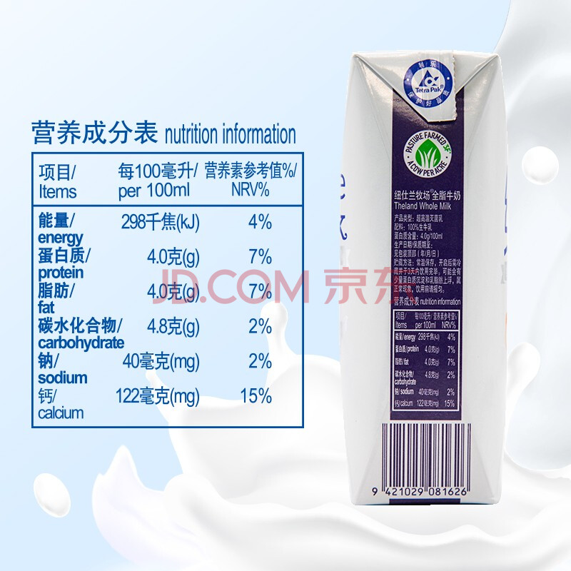 商品相册:纽仕兰×PLUS4.0g优质蛋白高钙全脂纯牛奶100%生牛乳250ml*48盒原装进口第