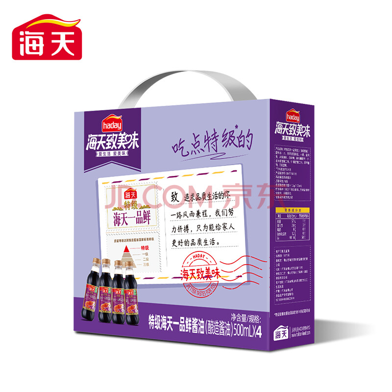 商品相册:海天 礼盒系列 一品鲜生抽酱油500ml*4【特级酱油】 炒菜提鲜凉拌第