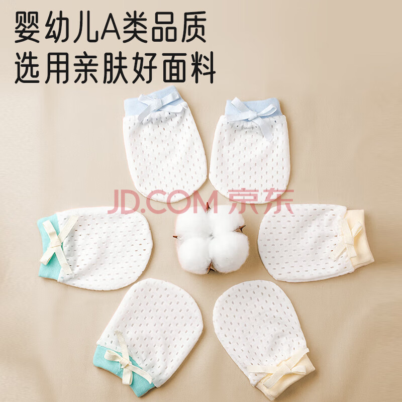 商品相册:爱宝适婴儿防抓手套0-1岁新生儿护手防抓脸手套透气冰丝款3双装S185 第