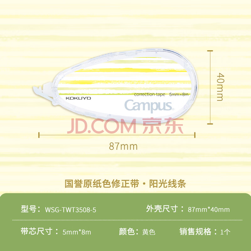 商品相册:国誉(KOKUYO)学生Campus原纸色替芯式修正带修改带涂改带 5mm*8m 可换替芯 本体 水绘风黄WSG-TWT3508-5第1张/共6