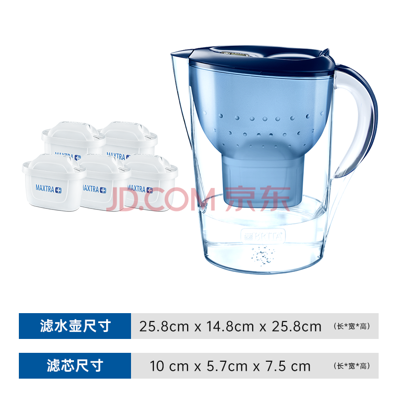 商品相册:碧然德(BRITA) 过滤净水器 家用滤水壶 净水壶 海洋系列 3.5L蓝色 一壶六芯装 环保加固包装第