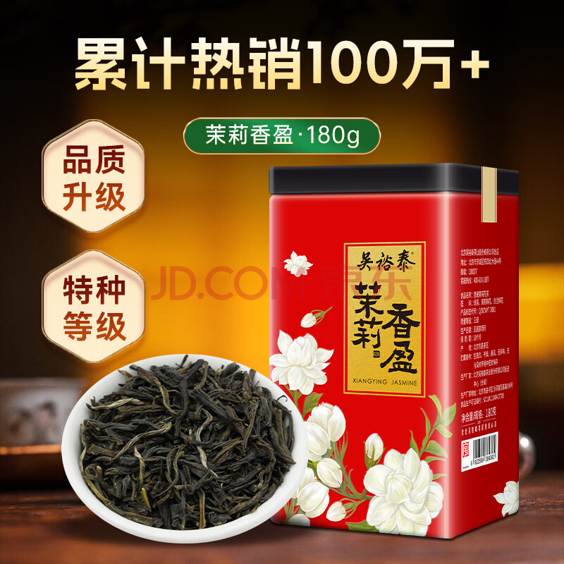 商品相册:吴裕泰茶叶 花茶花草茶 浓香型茉莉花茶茉莉香盈 六窨含芽180g实惠第