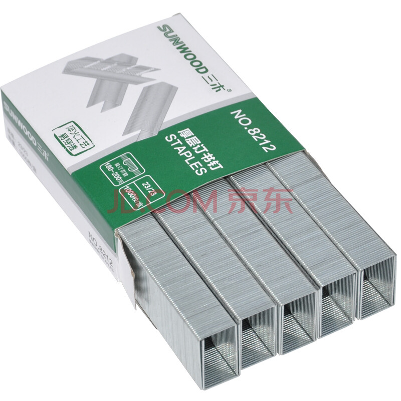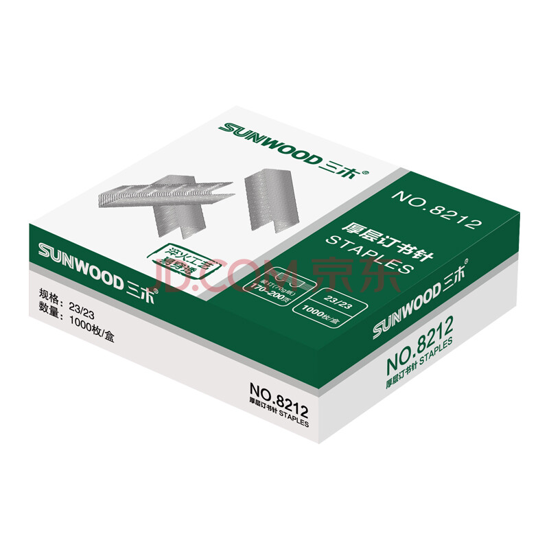 商品相册:三木(SUNWOOD) 23/23厚层订书钉/订书针/可订200页 1000枚/盒 8212第