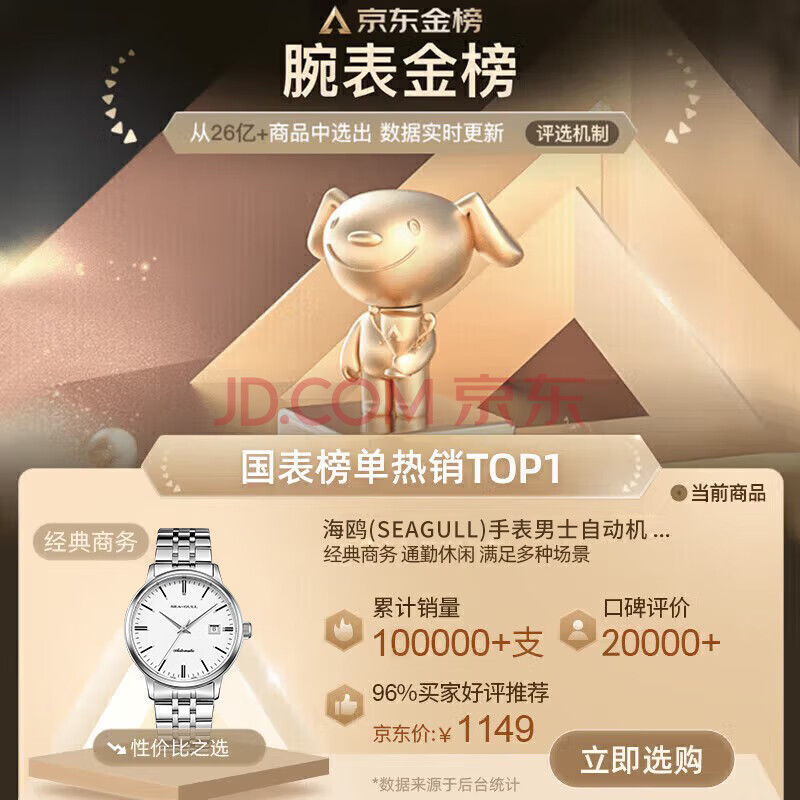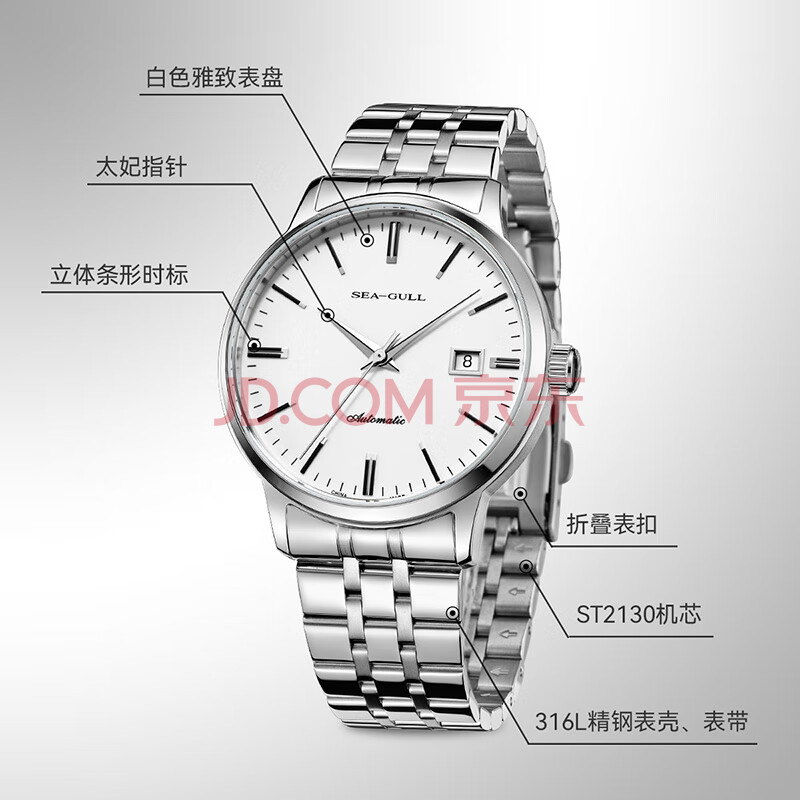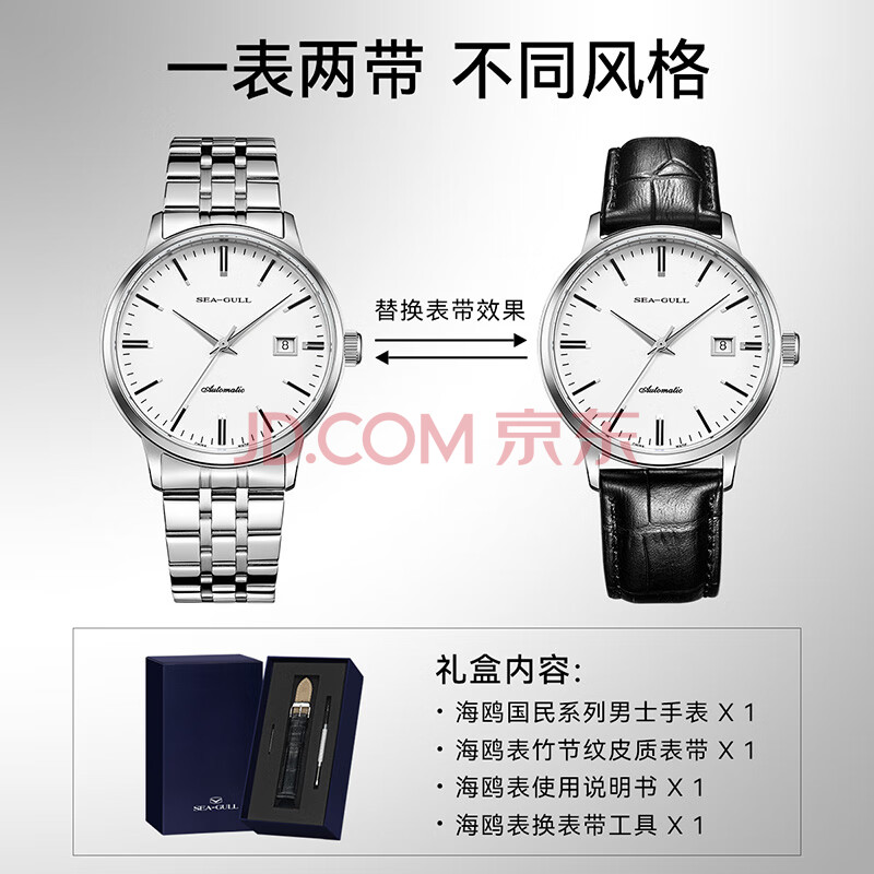 商品相册:海鸥(SEAGULL)手表男士自动机械表 小钢炮日历男士手表生日礼物男表套装816.362第
