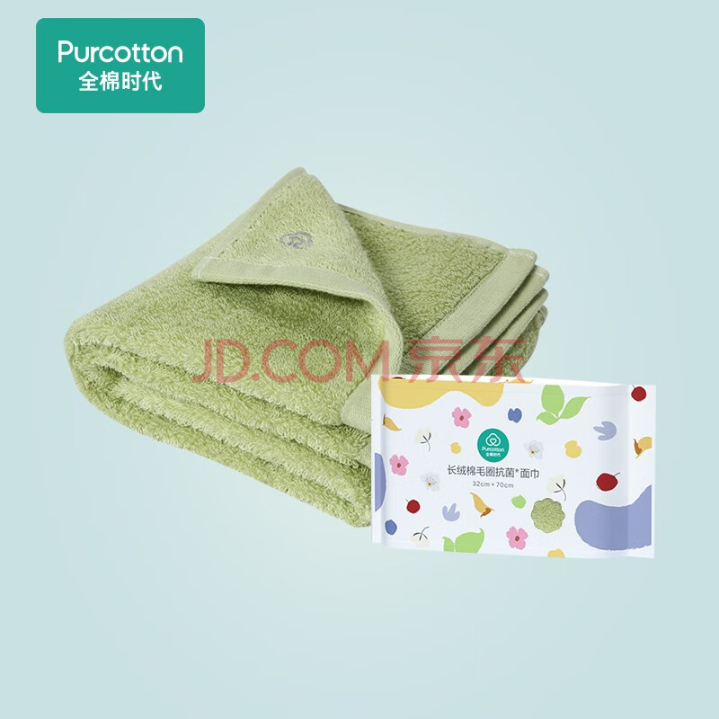 商品相册:全棉时代毛巾纯棉不易掉毛加大加厚方巾抗菌柔软强吸水 香草绿32×70cm 第
