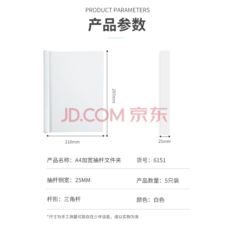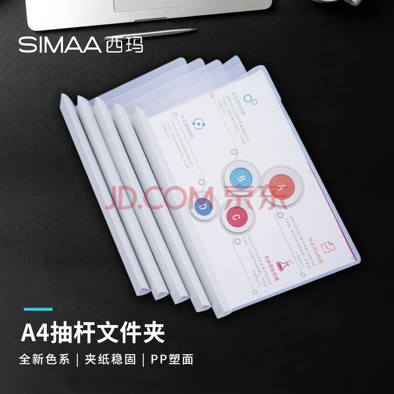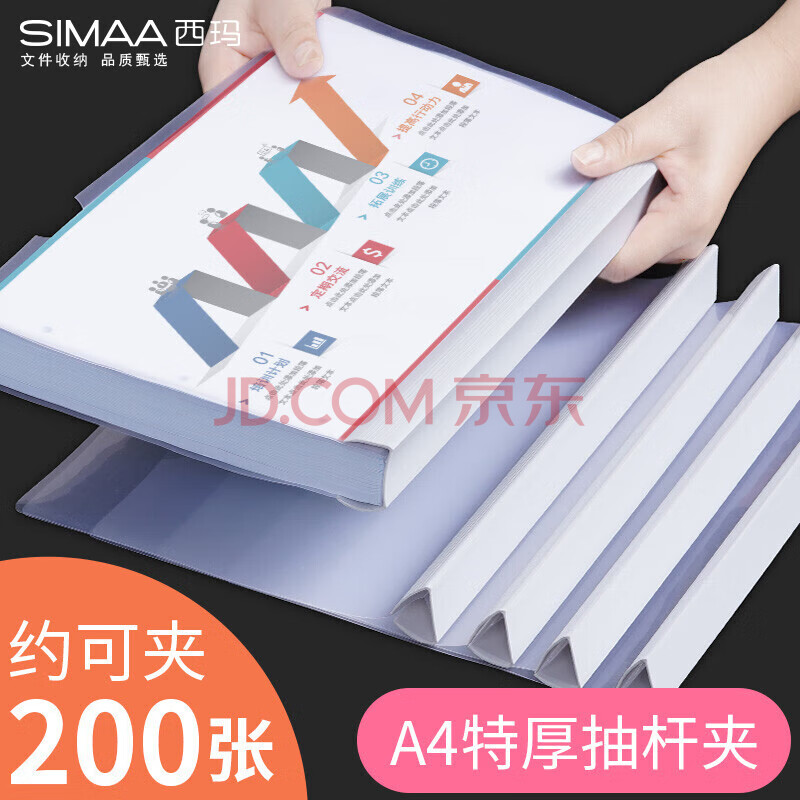 商品相册:西玛(SIMAA)5只 A4透明拉杆夹/抽杆夹/报告夹/文件夹 25mm大背宽简历报告夹 学生考试收纳 白色6151第