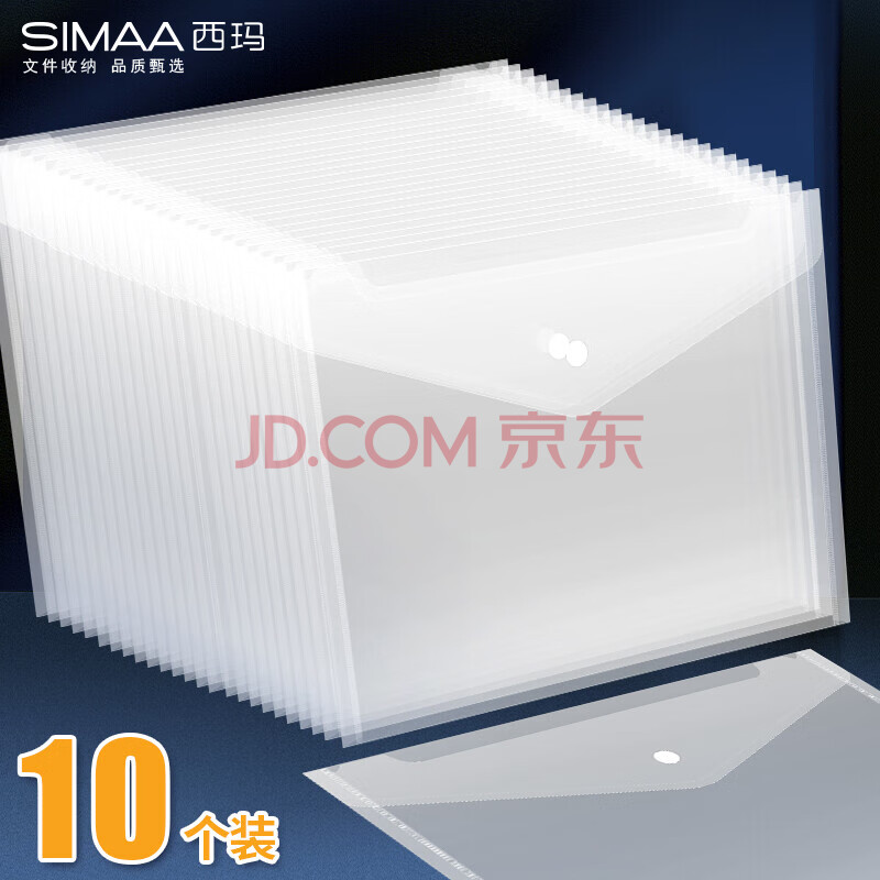 商品相册:西玛(SIMAA)10个装 A4按扣学生透明文件袋 特厚 防水试卷资料收纳袋 办公文件档案袋 办公用品 文具 21228第