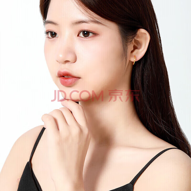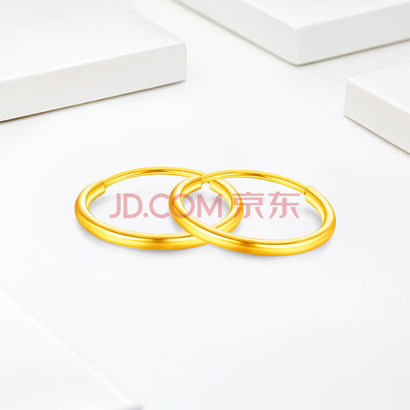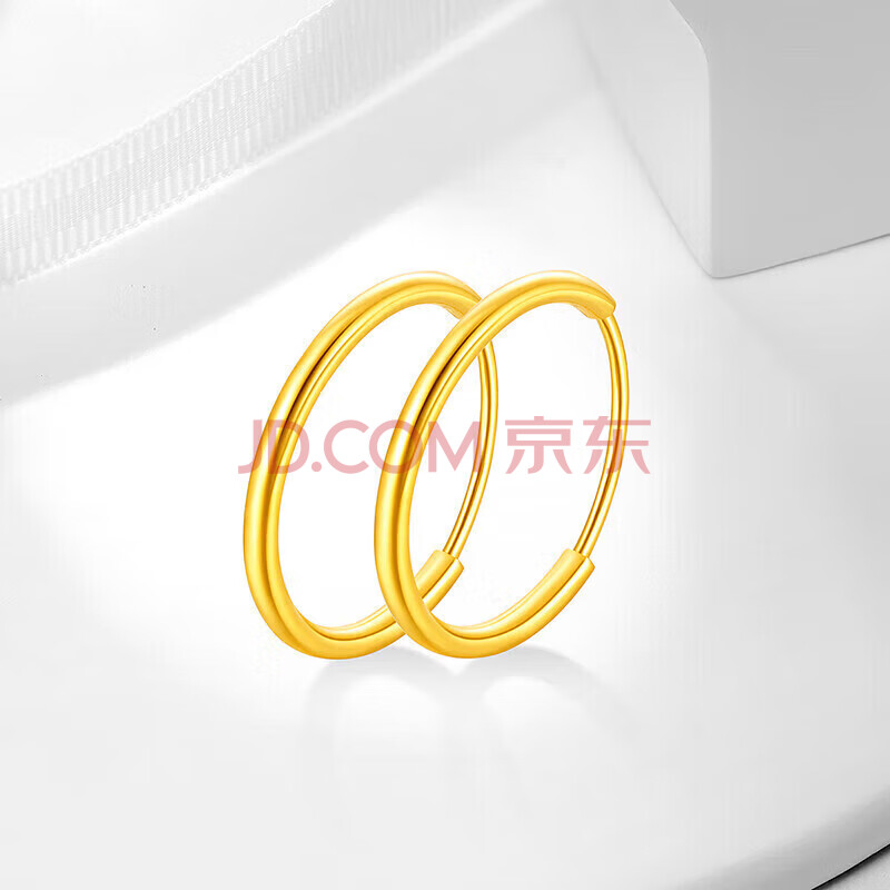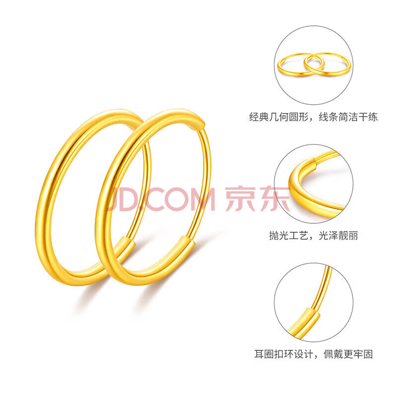 商品相册:梦金园 圣诞礼物 18K金耳环AU750彩金素圈光面耳饰送女友生日礼物第