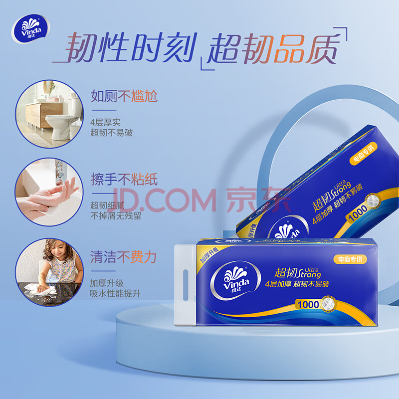 商品相册:维达(Vinda)无芯卷纸 超韧4层100克*40卷 加厚升级 洁厕纸整箱 新旧随机发货第