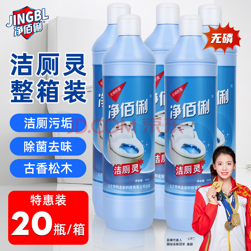 商品相册:净佰俐洁厕灵500ml*20瓶整箱装马桶清洁剂家用商用厕所强力洁厕剂第1张/共8