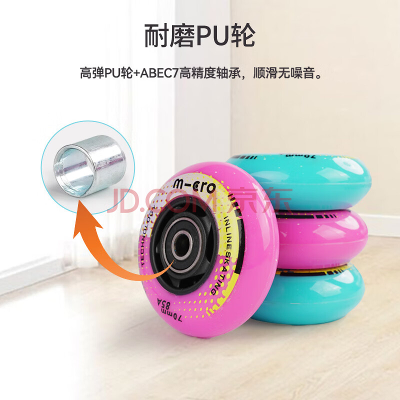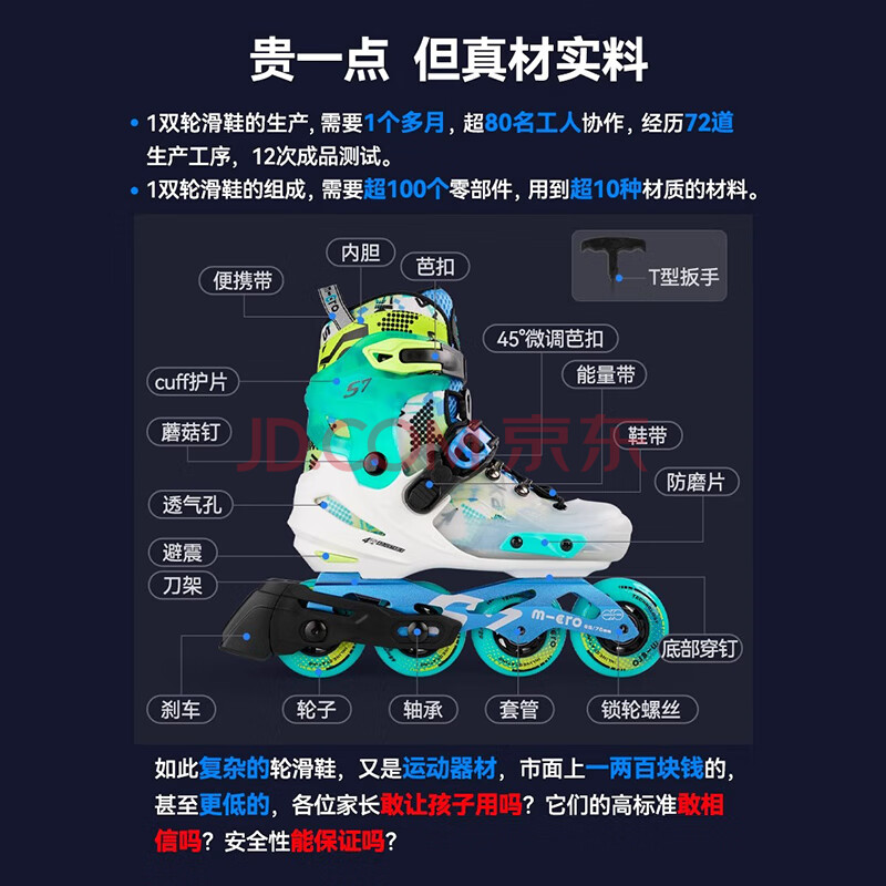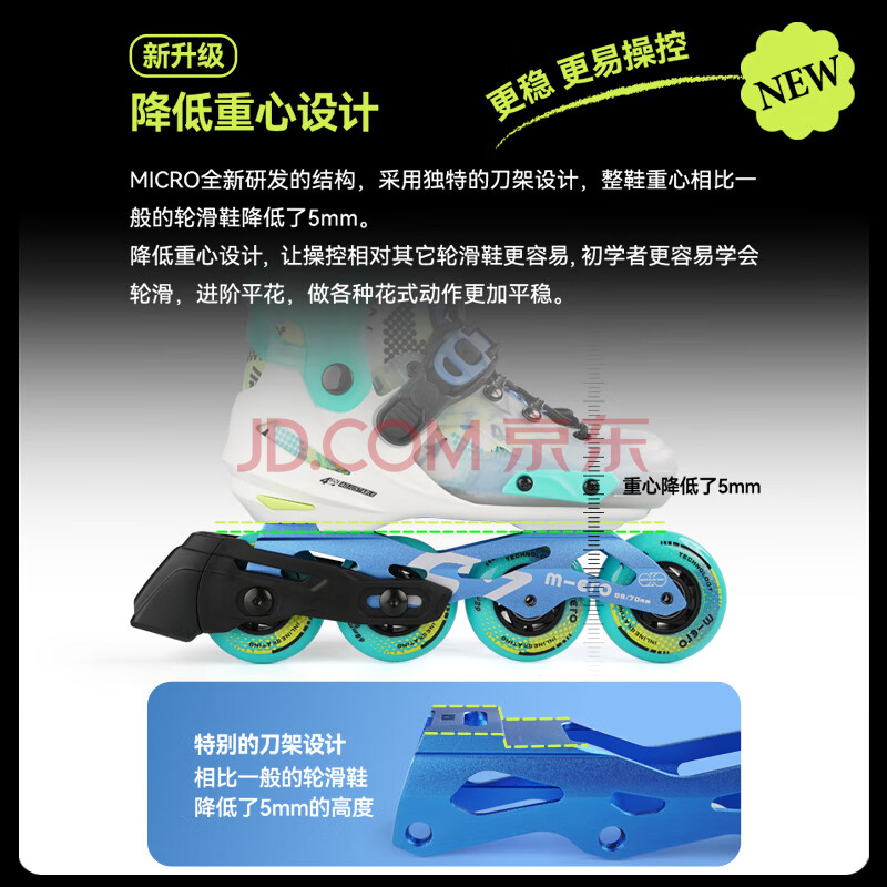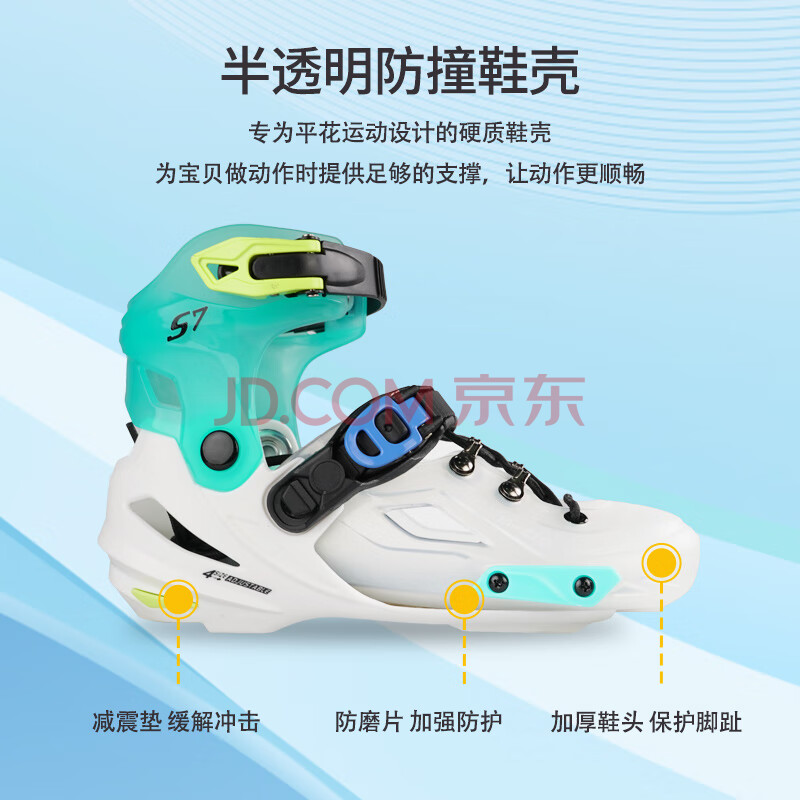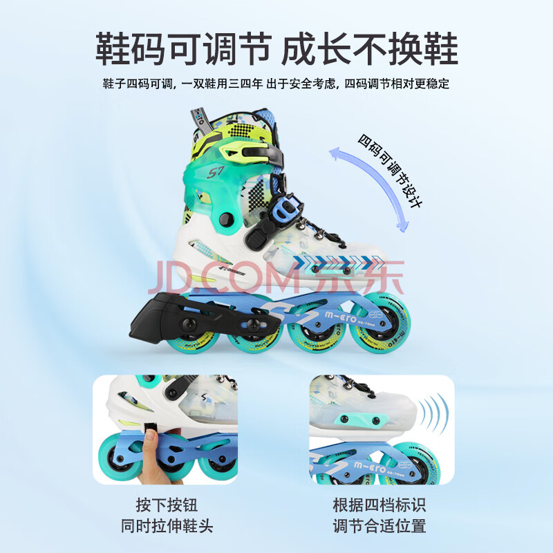 商品相册:micro迈古轮滑儿童溜冰鞋男女初学平花旱冰硬壳花样可调 S7蓝套餐M码第1张/共8