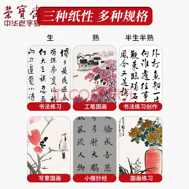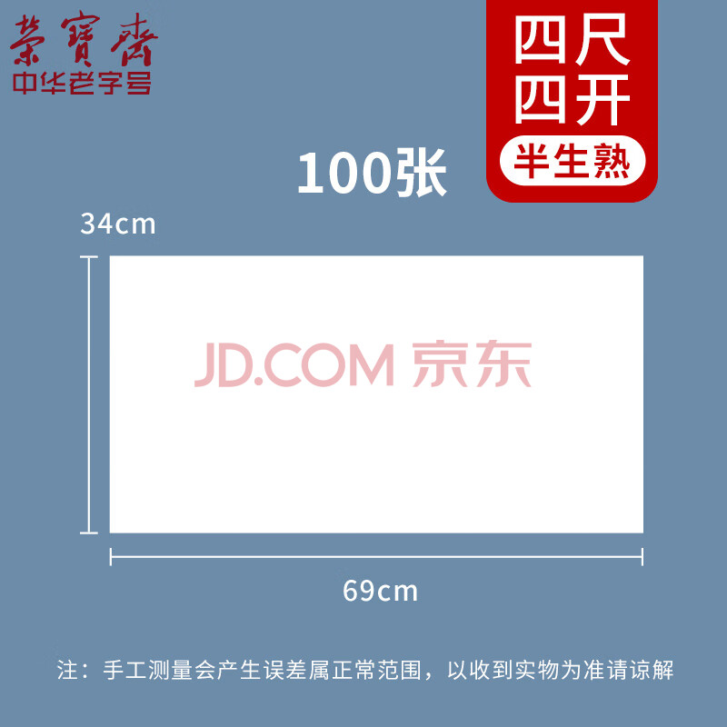 商品相册:荣宝斋 书画纸宣纸 日星宣纸书法国画专用毛笔初学练习创作文房四宝 半生熟-四尺四开/100张-加厚款第
