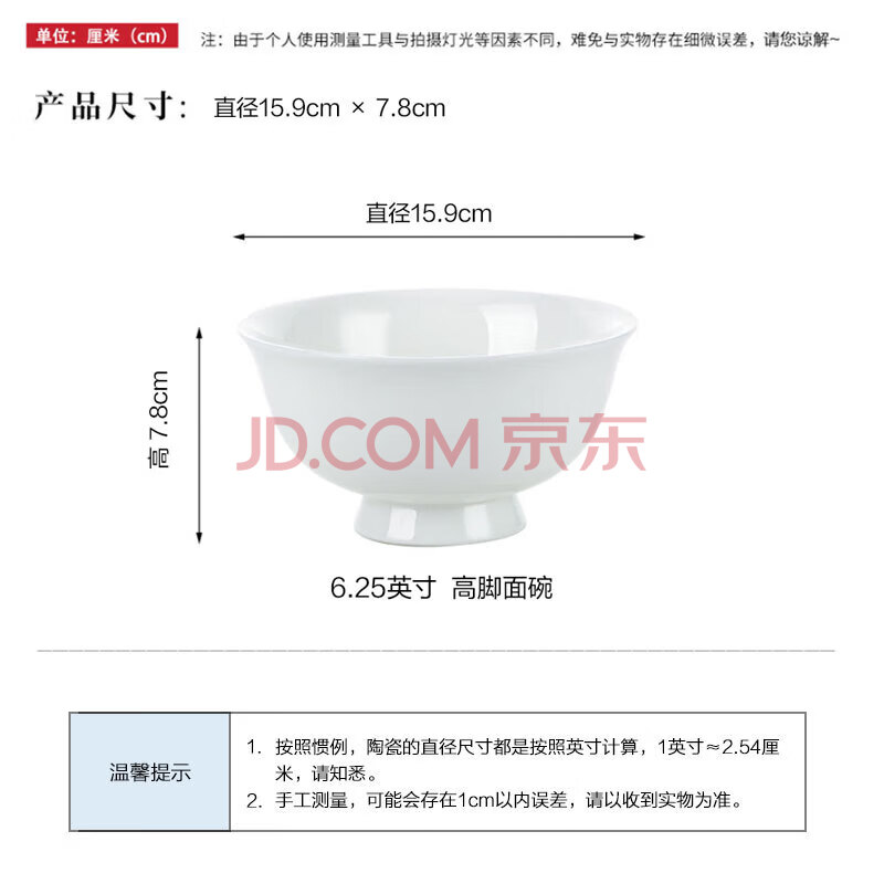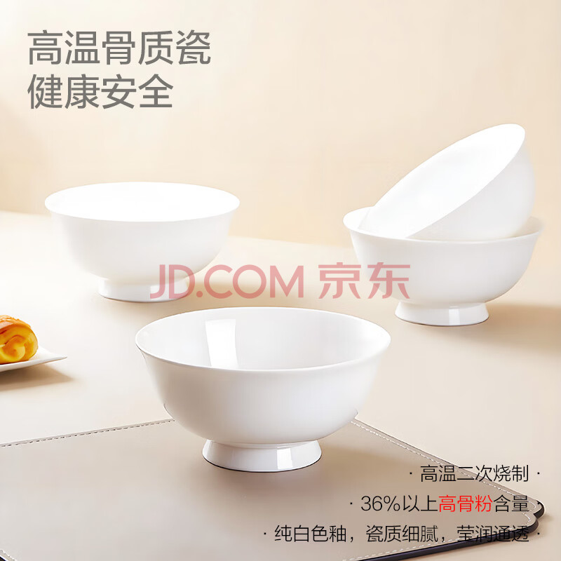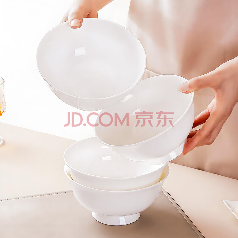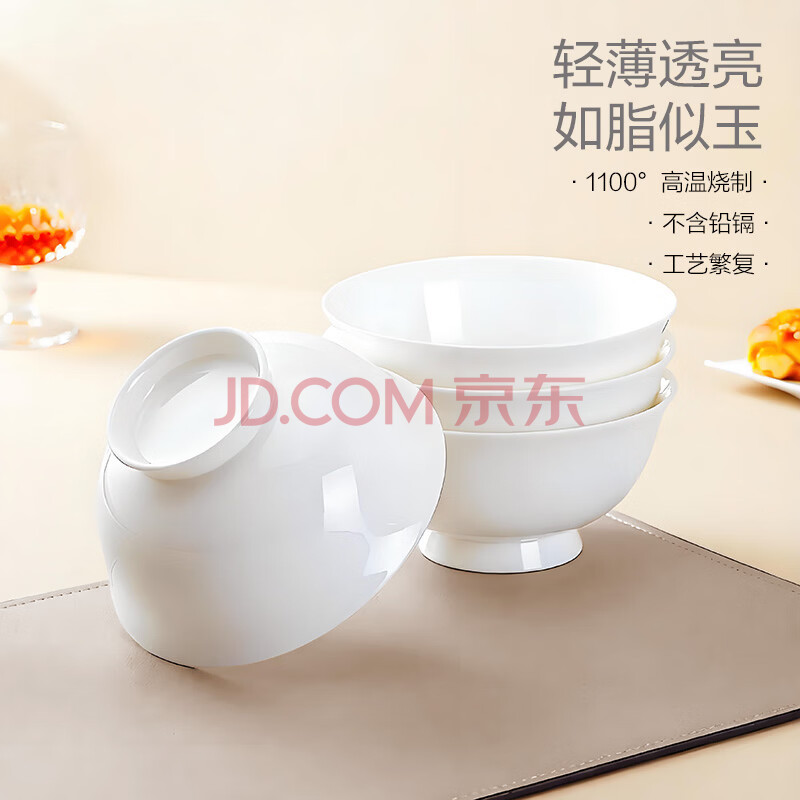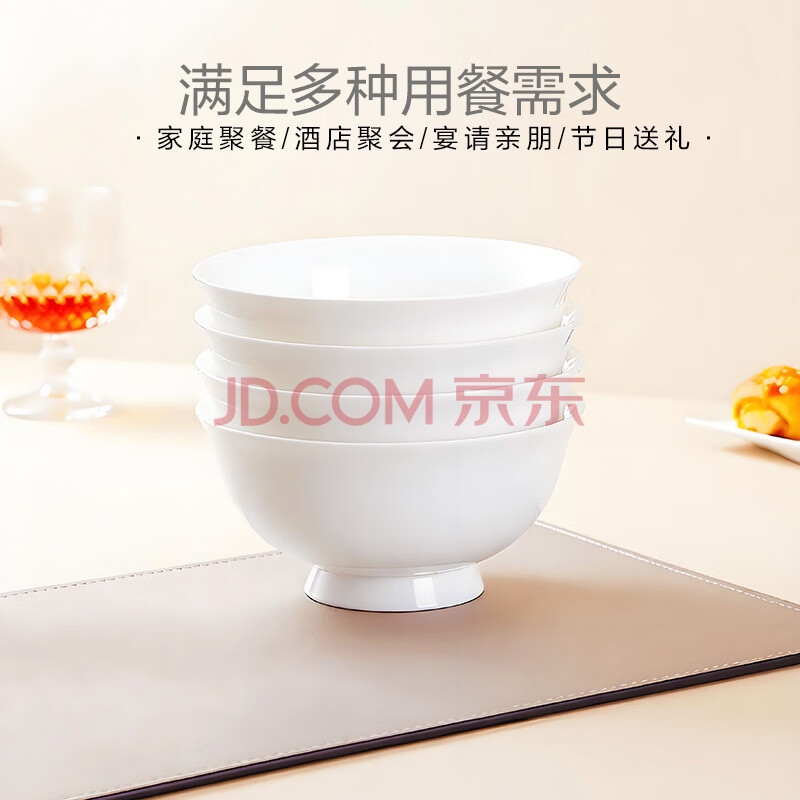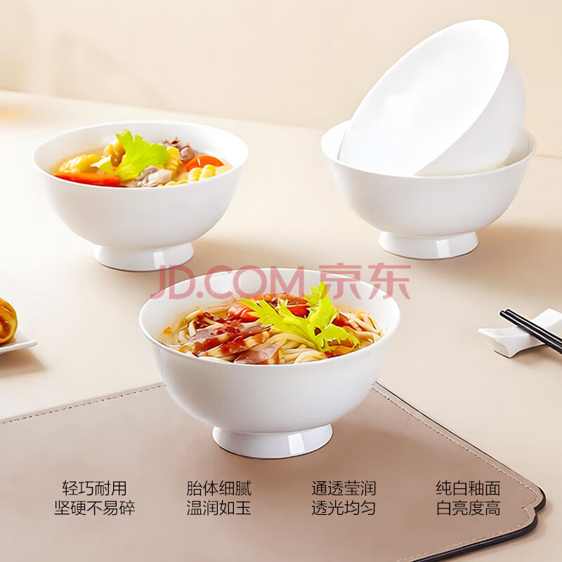 商品相册:斯凯绨(Sky Top)面碗骨瓷米饭碗纯白防烫高脚碗陶瓷家用餐具套装6.25英寸4件第1张/共8