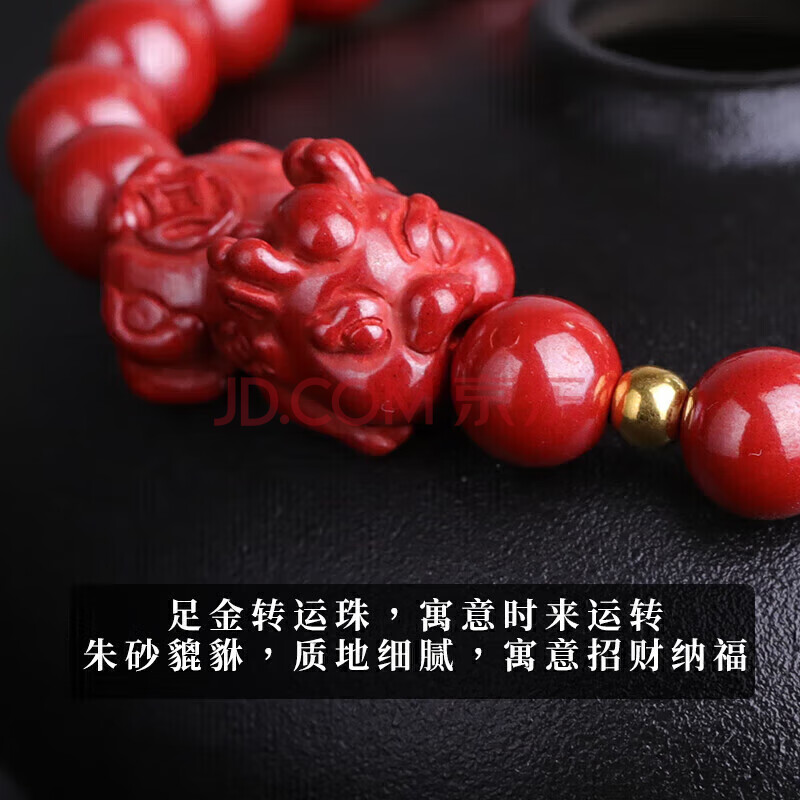 商品相册:豆蔻时光帝王砂朱砂手串高含量黄金珠貔貅祈福手链本命年男女士款8mm第