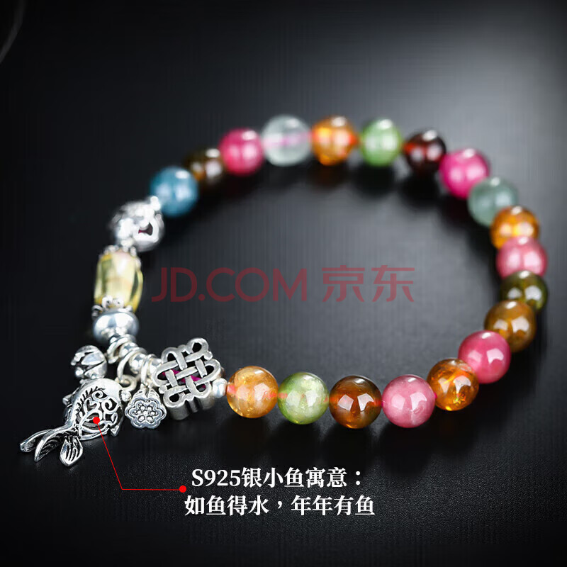 商品相册:石玥珠宝 7-8mm碧玺手链银鱼琥珀蜜蜡转运珠天然水晶手串男女士款水晶玛瑙第