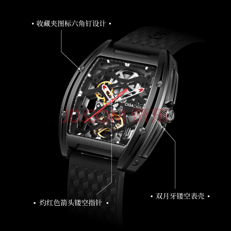 商品相册:CIGA Design玺佳锋芒系列机械腕表DLC酒桶型潮流手表男士 生日礼物第