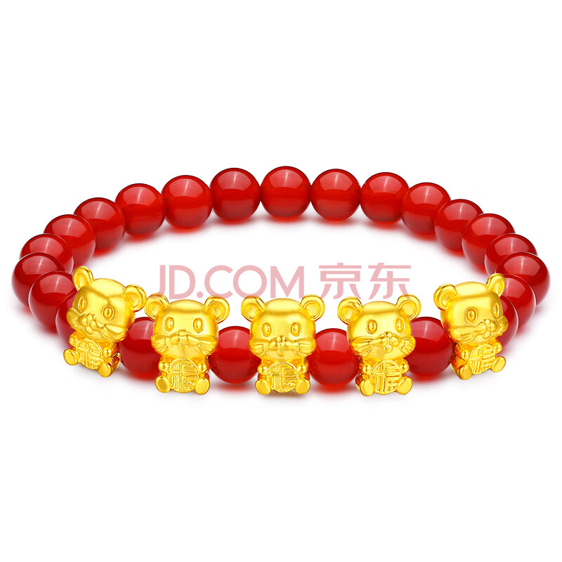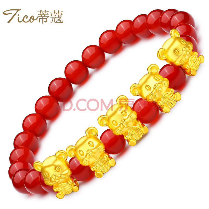 商品相册:蒂蔻(Tico)生日礼物本命年足金生肖五福鼠黄金转运珠手链女5D金老鼠红玛瑙第