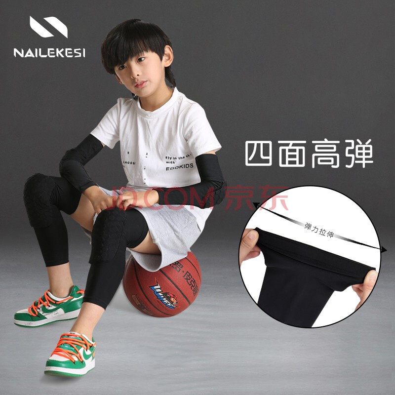 商品相册:耐力克斯运动儿童护膝护肘守门员篮球足球蜂窝防撞护具训练护腿半月板膝盖第