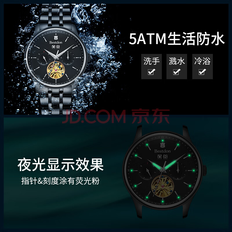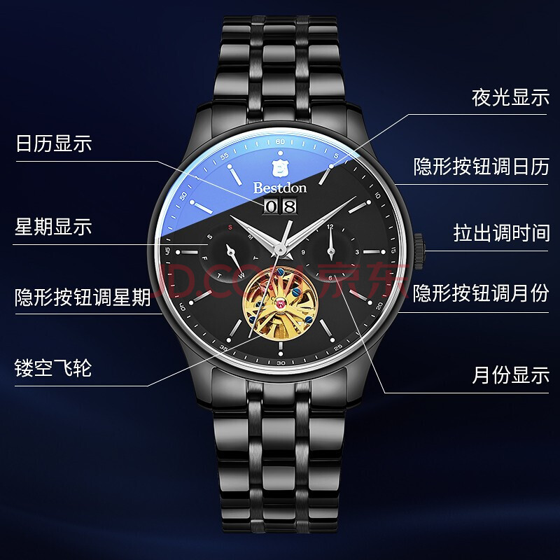 商品相册:邦顿(Bestdon)男士手表男自动镂空机械表防水腕表礼盒男款礼物送男生第