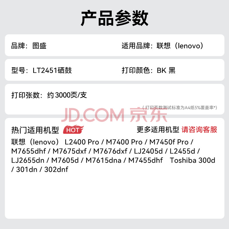 商品相册:图盛LT2451粉盒适用联想m7400pro粉盒Lenovo m7605d硒鼓 M7625DWA m7450fpro m7615dna LJ2405d 2605d打印机墨盒第