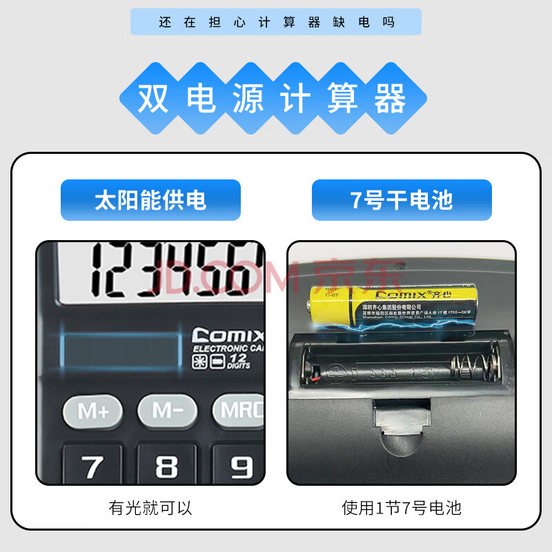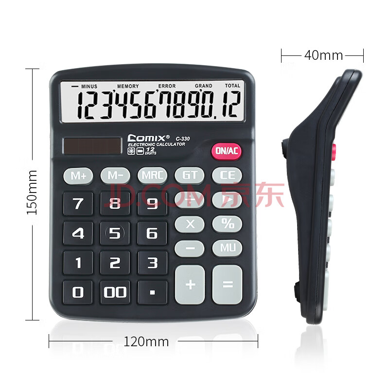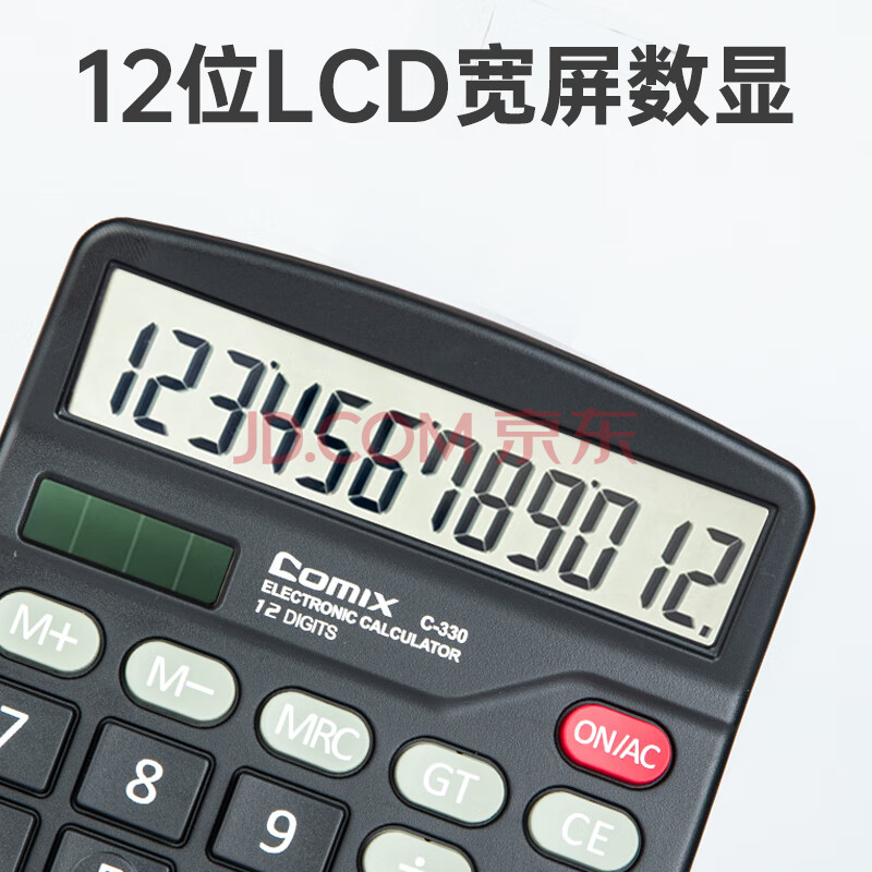 商品相册:齐心(COMIX)双电源桌面办公计算器 12位大屏幕桌面计算机837 学生办公文具用品 C-330第1张/共4
