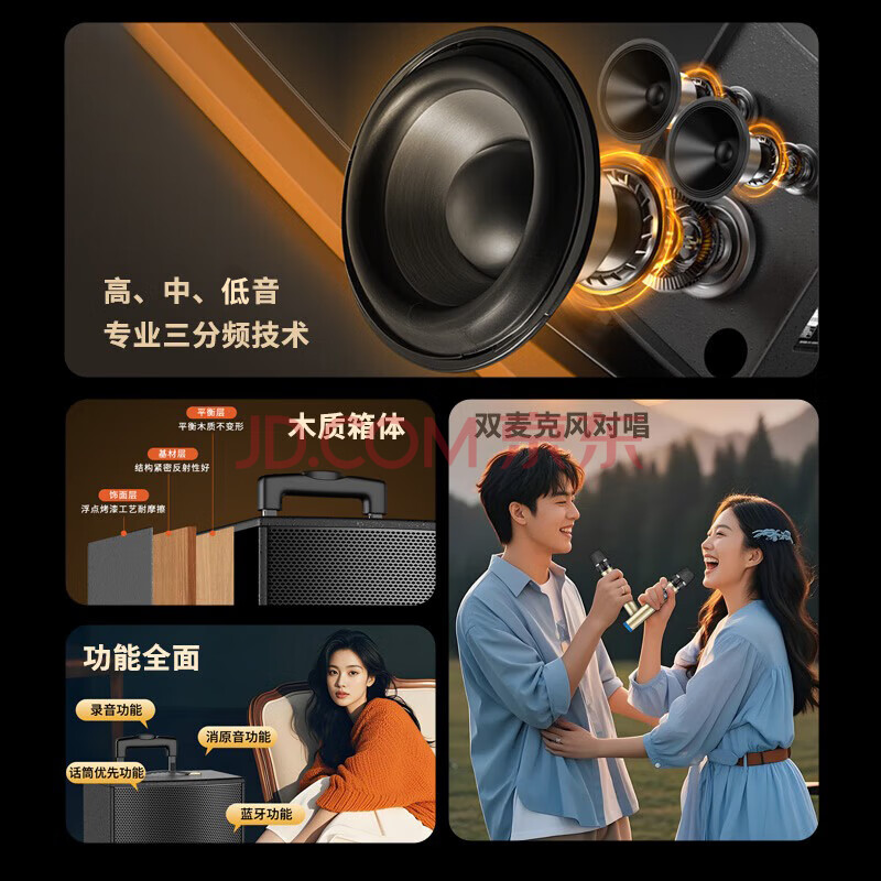 商品相册:索爱(soaiy)8吋广场舞音响木质大功率便携式户外重低音蓝牙k歌专用大音量移动拉杆音箱室外演出双话筒SA-X21第