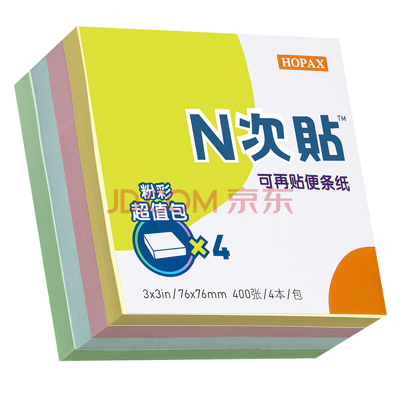 商品相册:N次贴(STICKN)32048可再贴便条纸/便利贴/百事贴(76x76mm)4色装第