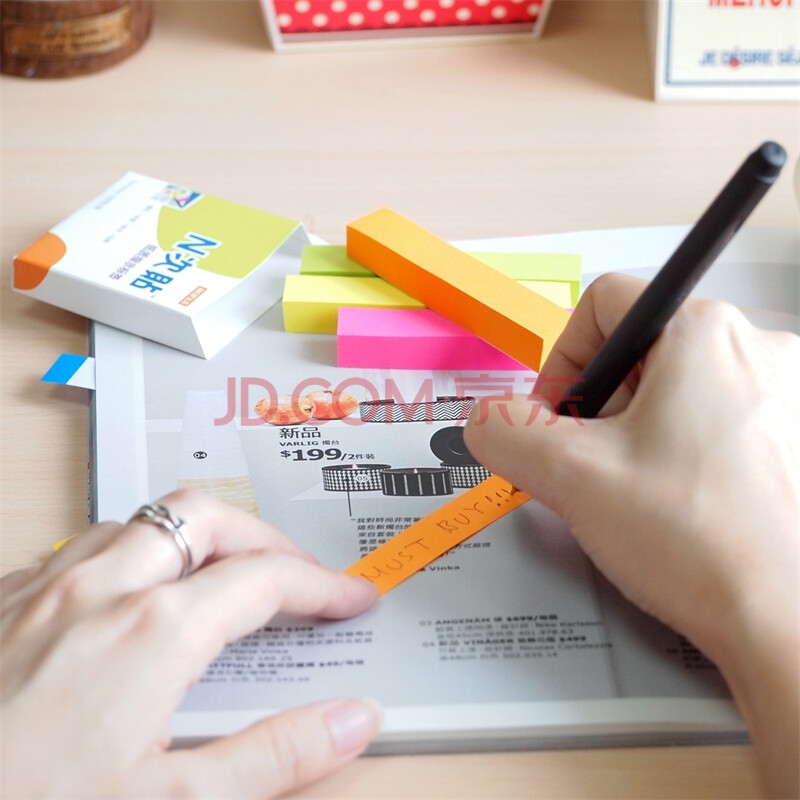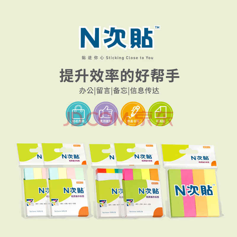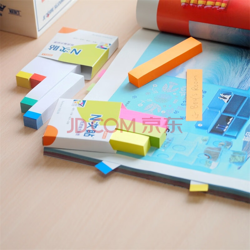 商品相册:N次贴(STICKN)四色荧光色纸质标示便条分条便利贴便签纸记事贴 大小册 12条1200张第