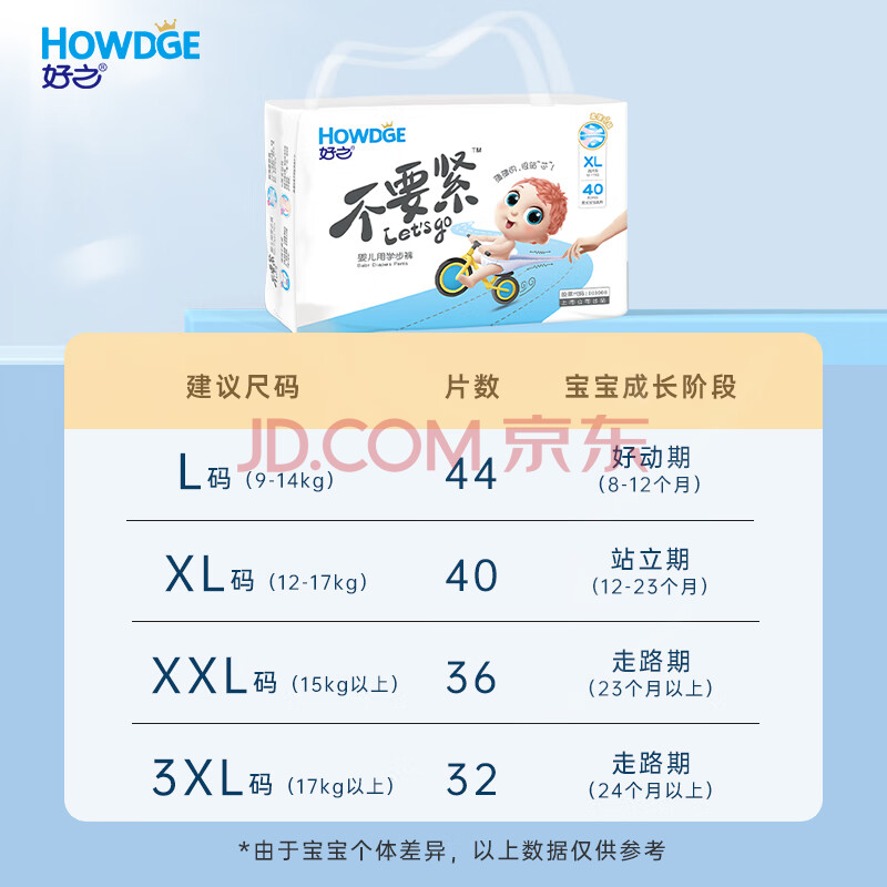 商品相册:好之【品牌直供 安心品质】不要紧超市同款拉拉裤 L44片(9-14KG)第