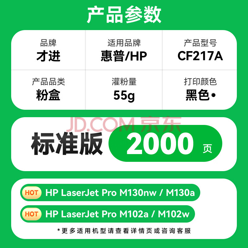 商品相册:才进适用惠普M130nw硒鼓M130fw/a/fn粉盒M102w/a打印机HP17a墨盒19a晒鼓CF217a复印一体墨粉LaserJet Pro MFP第