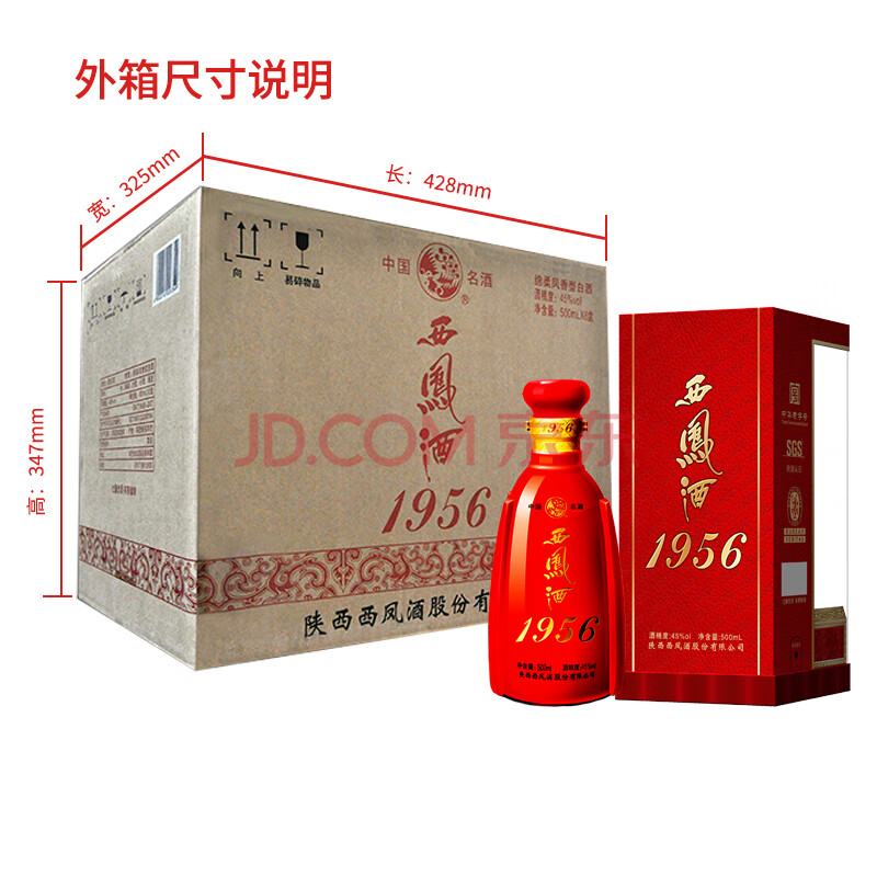 商品相册:西凤酒 1956红瓶 凤香型 白酒 45度 500ml*6瓶 整箱装【春节送礼】第
