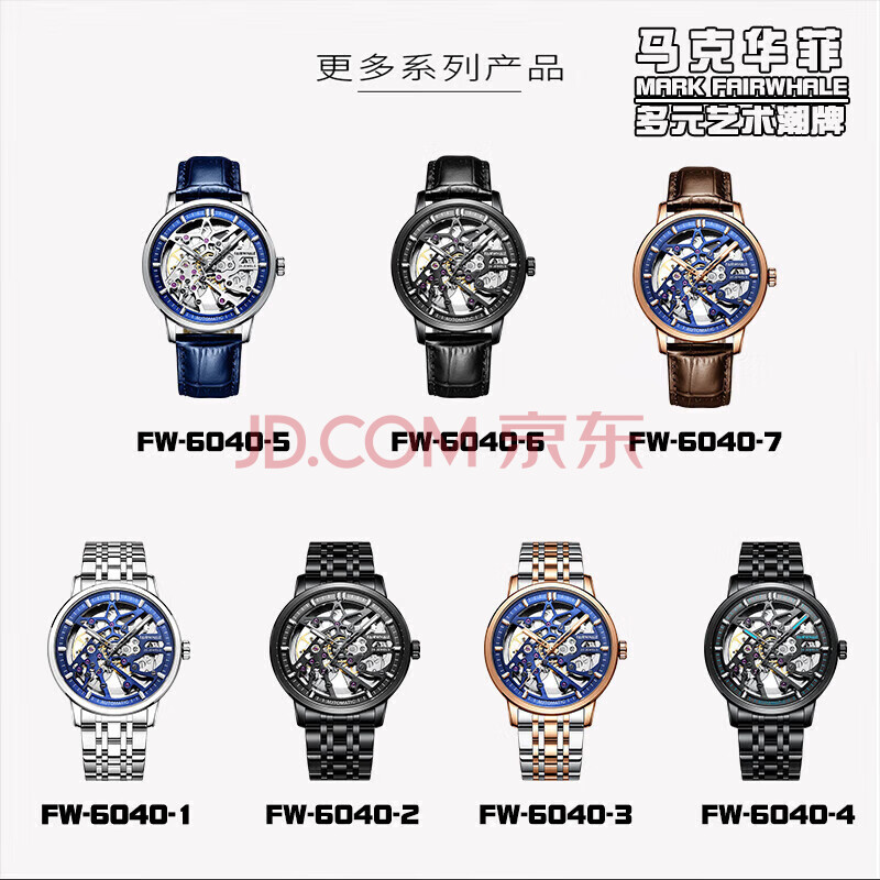 商品相册:马克华菲(MARK FAIRWHALE)男士手表全自动机械手表防水镂空十大名表腕表生日礼物送男友6040第
