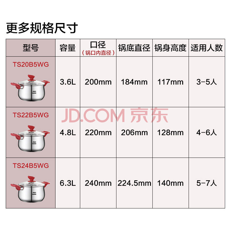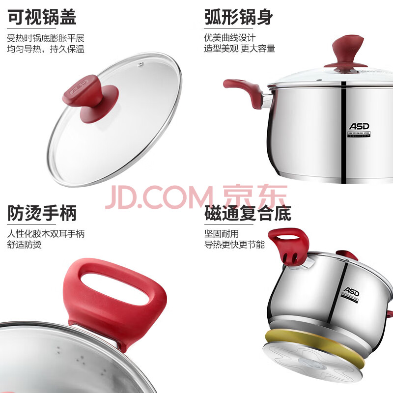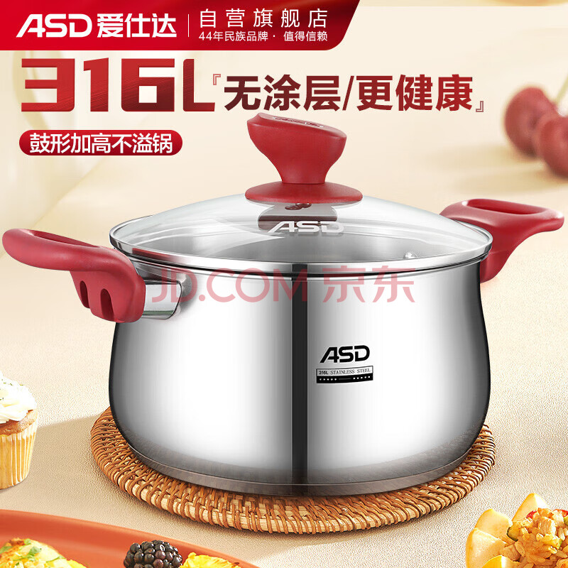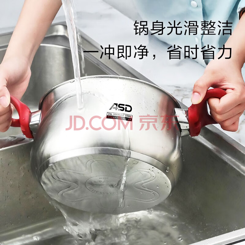 商品相册:爱仕达(ASD)汤锅 316L食品级加厚不锈钢蒸煮锅 复底奶锅22CM燃气电磁炉通用B5第