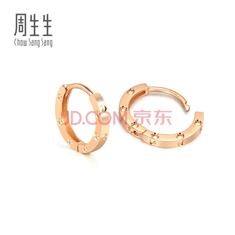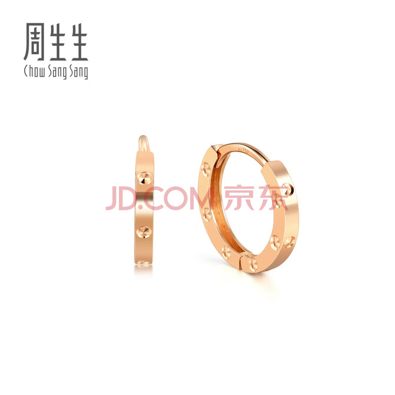 商品相册:周生生小耳圈耳钉 薄荷系列18K彩金基础素圈耳环 91978E定价 第
