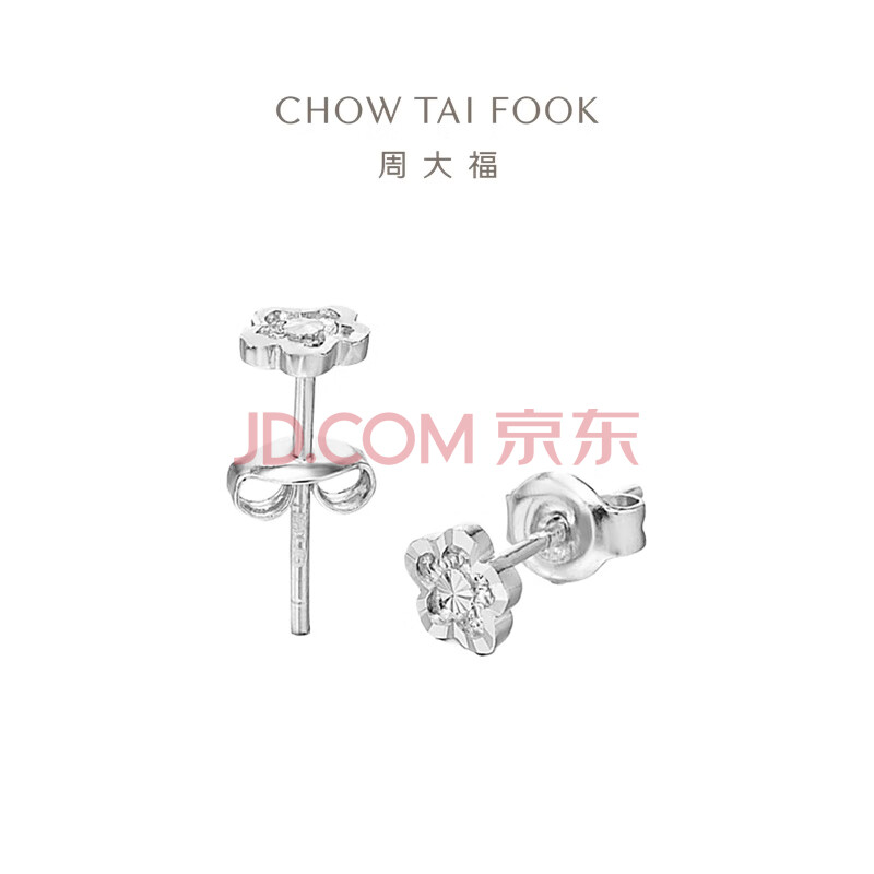 商品相册:周大福花形白金/PT950铂金耳钉 PT124476生日礼物第