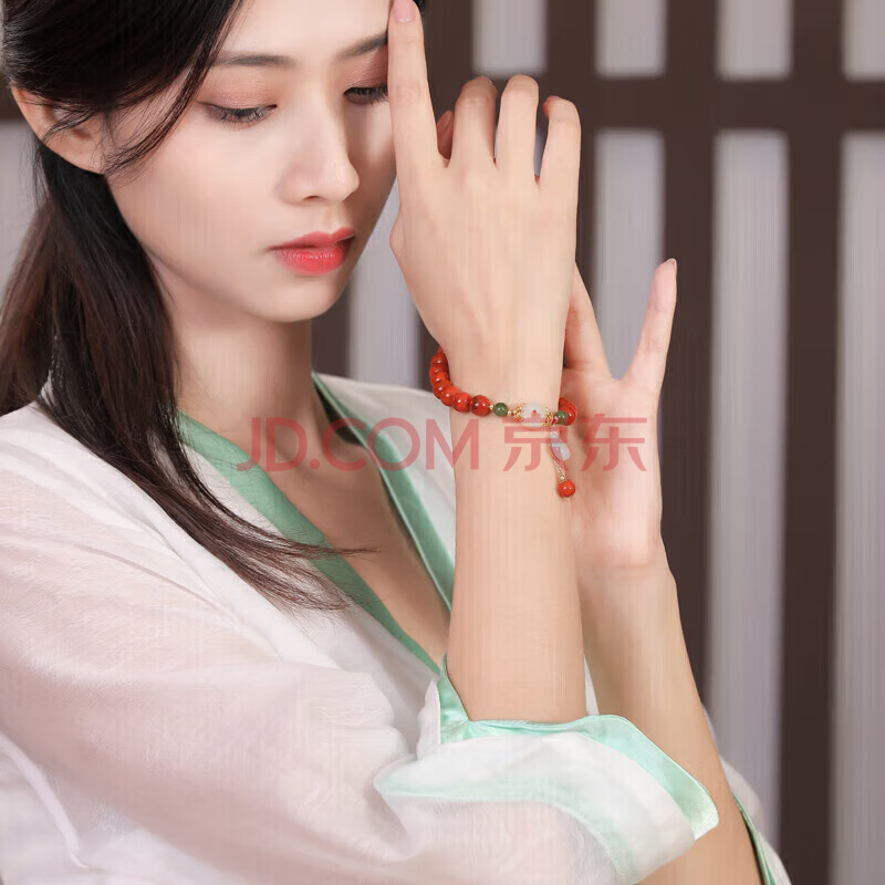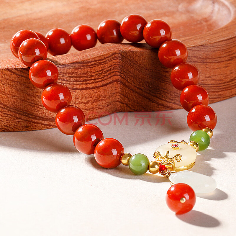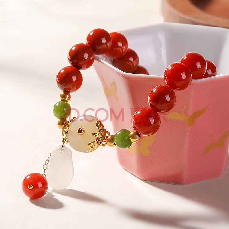 商品相册:豆蔻时光8mm南红玛瑙手串银镶和田玉石平安扣福袋水晶手链女士款第