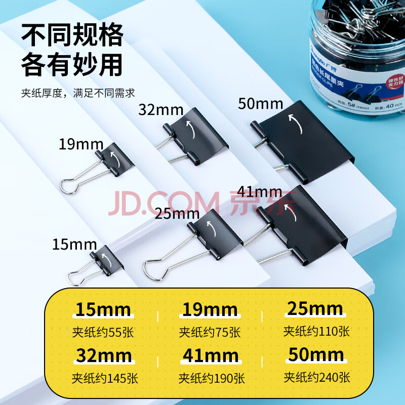 商品相册:广博(GuangBo)24只装长尾夹子41mm燕尾夹长尾票夹黑色PJ5230第